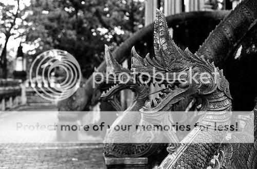 Người bạn Lào đi cùng tôi nói rằng ở việt nam gọi là rắn mào, nhưng ở Lào gọi là Rồng. Trong chùa Lào có rất nhiều rồng, nhiều hơn rồng của việt nam. Mỗi ngôi chùa bao giờ cũng có ít nhất vài chục con. Chúng không quấn cột, không nằm trên xà gồ như ở Việt Nam, mà chủ yếu chúng cuốn theo lan can của bậc thang và đầu hướng ra ngoài. Hoặc đứng bệ vệ trước sân chùa, to lớn, oai phong làm sao!