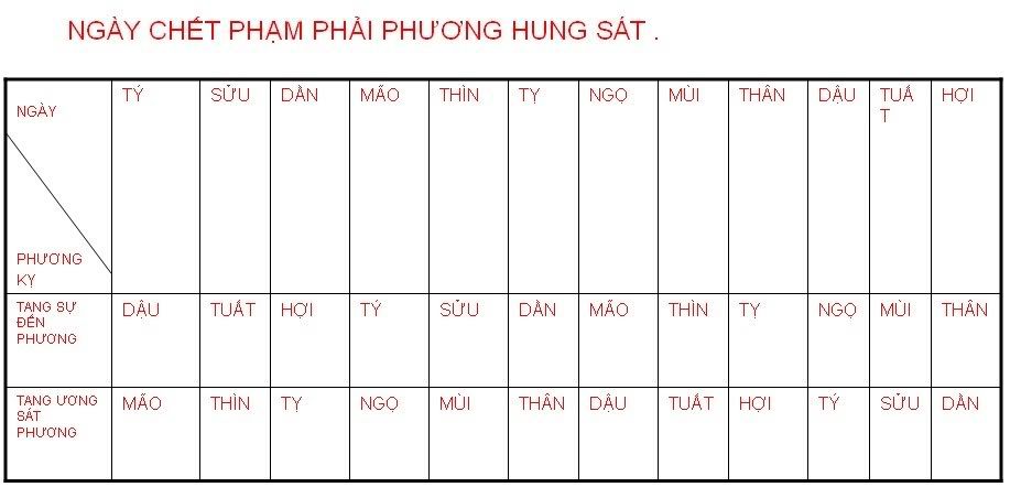 Khi đã đến nhà chủ tang rồi , nên ngồi ở phương Sinh khí và phương Hoa Cái . Không được ngồi ở phương Thái Tuế và phương Tử Khí . Các phương đó tính theo bảng sau .