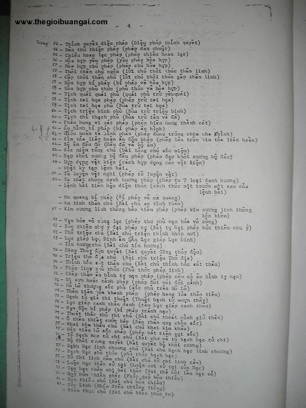 Suy tới nghĩ lui, tiếc công người đi trước dịch thuật, ấn loát, phát hành. Người kế tiếp gìn giử, lưu truyền đời sau. Dù có sách chưa chắc luyện thành, nhưng sách vẫn là sách. Người đọc sách ít nhiều gì cũng lượm lặt được chút kiến thức khái quát về phép thuật tiên gia. Vì vậy tôi chợt nhớ lại việc hiệu chỉnh sách trên Thế Giới Bùa Ngãi lúc trước. Giờ thì âm thầm làm một mình.