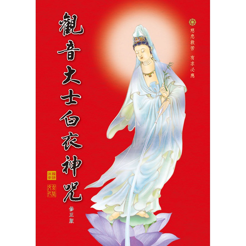 白衣觀音大士,即是身著白衣的 世音菩薩的形象,亦稱「白衣觀音」 「大白衣」等。此咒原名為《隨願陀 羅尼》,選自《法苑殊林》第六十卷 咒術篇》。誠心讀誦此咒,必有感應 讀的遍數越多越好,可以消除一切災 殃魔難。