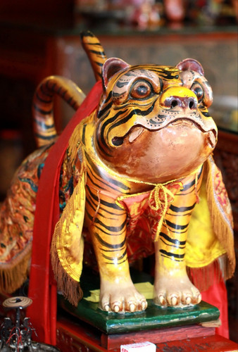 臺灣傳說「土地神轄山中虎」,而土 神坐騎也常被認為是虎,也有傳說虎 能守護廟境。故許多土地廟會在土地 神的供桌下供奉一座虎的雕像,謂之「虎爺」、「虎爺公」、「虎將軍」。