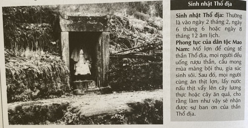 Tục thờ Thổ địa và thần Tài phổ biến từ thị xã đến nông thôn. Bà con người Hoa vẫn thờ Thổ địa theo tục lệ của họ nhưng cũng bắt chước tục thờ phượng của ta. Đặc biệt có một vài gia đình Thiên chúa làm nghề mua bán cũng thờ Thổ địavàthần Tài như bên lương.