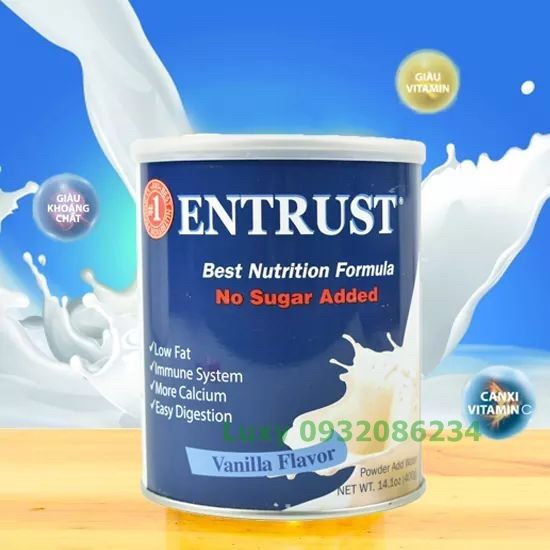 - Pha 50g sữa bột Entrust với khoảng 250ml nước nóng. Uống hết trong vòng 12h.