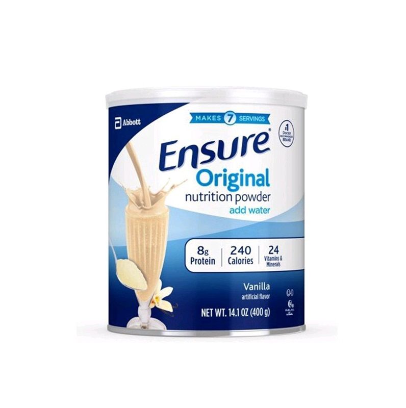 Sữa bột Ensure Powder 400g (14.1oz) Abbott Hoa Kỳ cung cấp 24 loại vitamin và khoáng chất cần thiết có vai trò quan trọng để bồi dưỡng sức khỏe tối ưu cho người già, người gầy, người muốn tăng cân, hồi phục sức khỏe sau ốm hay phẫu thuật...