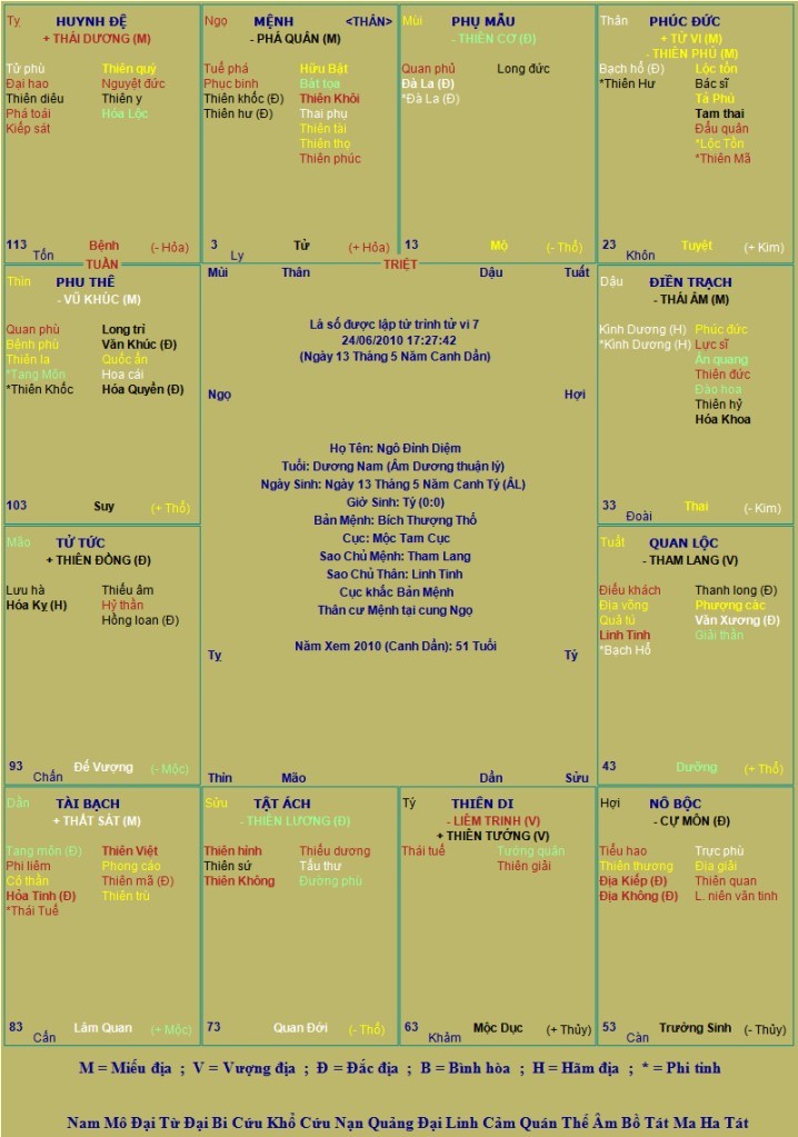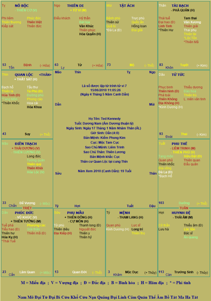 Trong một lá số khác dành cho tuổi Quý Hợi của ông cũng viết: "Ðây là người ôn hòa, mềm mỏng, đa nghi, có nhiều mưu trí. Suốt cả cuộc đời đều được yên thân, và hưởng giàu có sau 33 tuổi. Khuyết điểm của người tuổi này là: chủ quan, liều lĩnh, thô bạo, nóng nảy..."