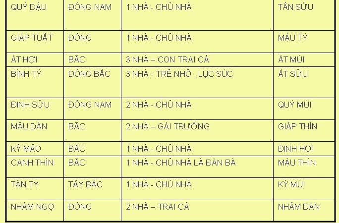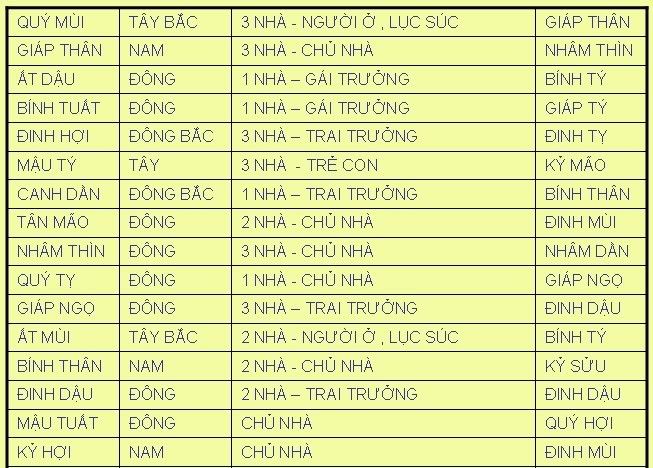Các năm : Dần - Ngọ - Tuất : Sát ở phương Dần - Mão - Thìn .