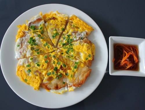 Những sợi bánh phở được bao bọc bên ngoài một lớp trứng chiên vàng, thơm phức cùng vị cay cay của nước chấm tạo nên một món ăn ngon và lạ miệng.