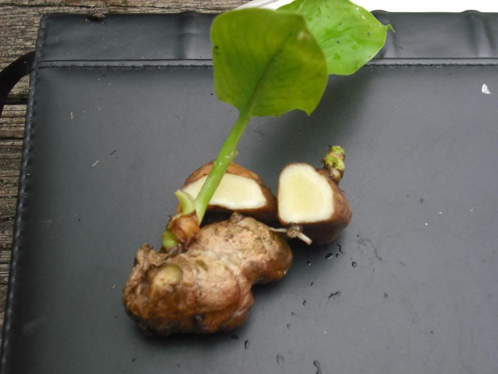 dạng giống y như củ riềng...... Trong ruột màu trắng,không cay,không thơm, mùi hơi lạ...khó phân biệt.