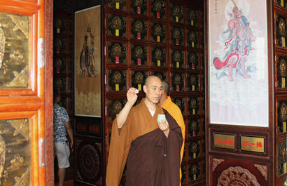 如来心塔护国佑民。灵觉法师安奉一 如来心水晶咒塔到水中。