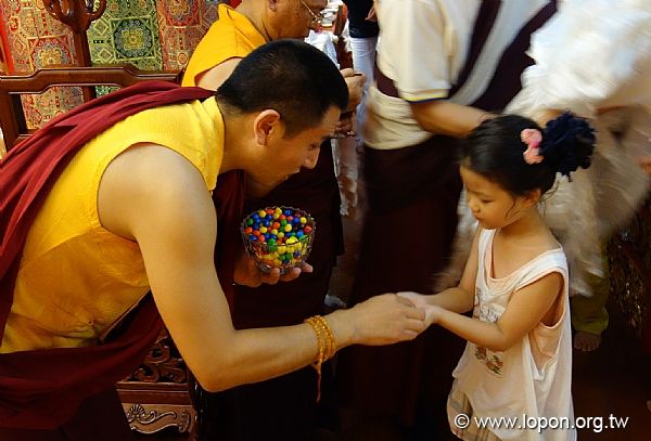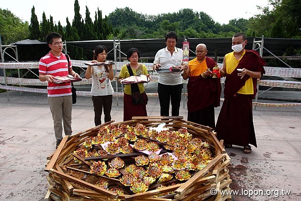 觀想此等有情從生命畏懼中解脫,生 世世獲得壽命悉地。施放丸子等加持 後,接誦: