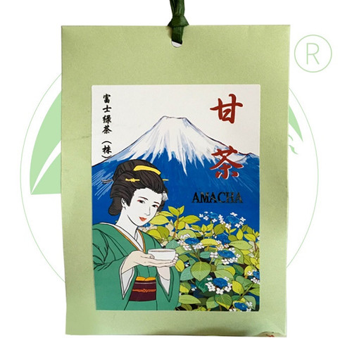 Amacha (甘茶) thuộc dòng trà thảo mộc (herbal), còn gọi là trà ngọt, được dùng trong ngày lễ Kan-butse-e hay lễ Tắm Phật, tổ chức hàng năm vào ngày 8 tháng Tư dương lịch (là ngày Phật đản tại Nhật Bản). Trà amacha được tưới trên tượng Phật sau đó hứng và chia cho mọi người cùng uống (dựa theo truyền thuyết thì loài hoa này có liên quan tới thời khắc linh thiêng mà hoàng hậu Maya hạ sinh Đức Phật, khi Đức Phật đản sinh, có chín con rồng tưới Amrita trên Ngài; amacha được dùng để thay Amrita).