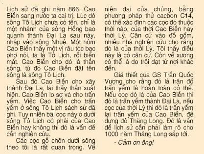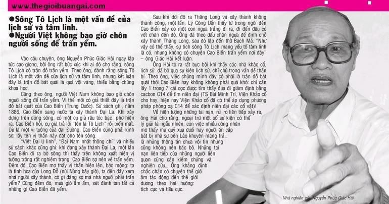 Quả thật , NCD là người miền Nam , chưa lần đặt chân lên đất Bắc , nhưng cũng xin góp tiếng với tác giả bài viết về việc sông Tô Lịch, với tính cách 1 người thích tìm tòi về PT.