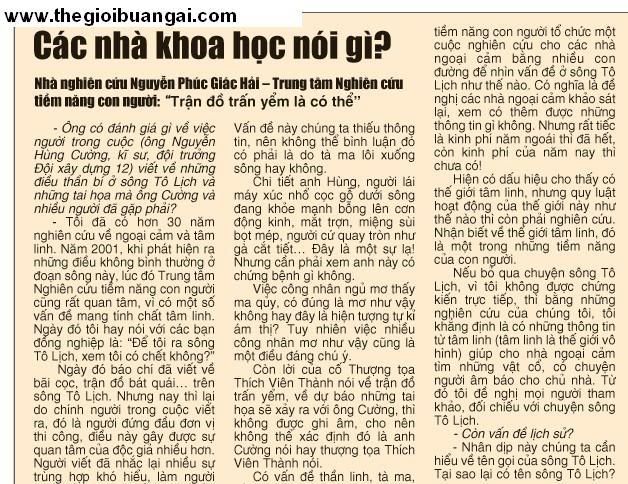 -Thứ tư: Chuyện về tâm linh chẳng ai là không dám tin, kể cả những GS,PGS...Nhưng khi báo chí nói quá nhiều về vấn đề này, trong tư tưởng của nó phải nói khác...Có thể họ không muốn dân chúng phải quá quan tâm về vẫn đề này.