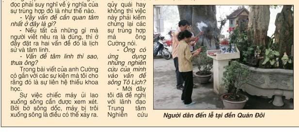 Gần một tháng sau bài báo đầu tiên với tiêu đề "Thánh vật ở sông Tô Lịch", cuộc sống của những người dân làng An Phú, phường Nghĩa Đô, quận Cầu Giấy, sôi động, ồn ào hẳn lên.