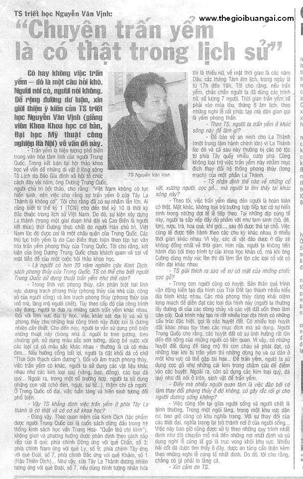 để các bạn tham khảo về việc trấn yểm (Tài liệu của Cụ Đặng Mỹ Sâm dịch năm 1975. Ông Cao Trung trong tập Địa lý VSD 12-1996 tại Hoa Kỳ)