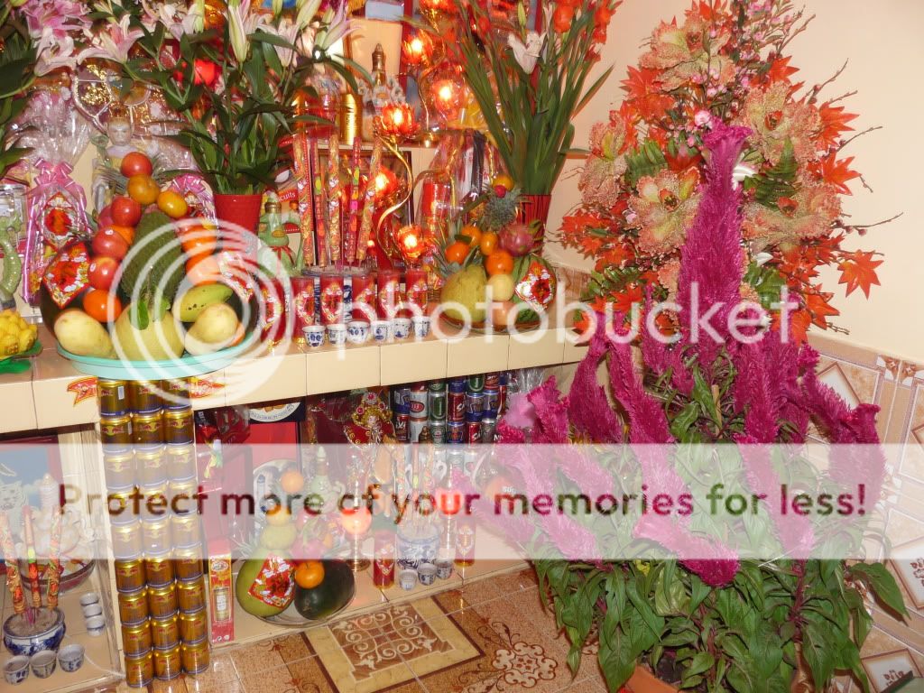 Dưa xanh, quýt đỏ , bánh quà đầy mâm