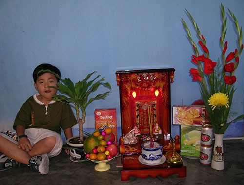 Thổ Công rất thích đùa nghịch với trẻ con do vậy các bé tinh nghịch hay trộm đồ cúng của ông Địa, Thần Tài - Ảnh NT