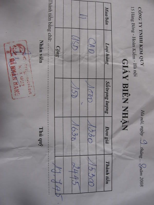 Đây là giá ngoại tệ mua vào ngày 9/8/2008 của Hiệu vàng Kim Qui: