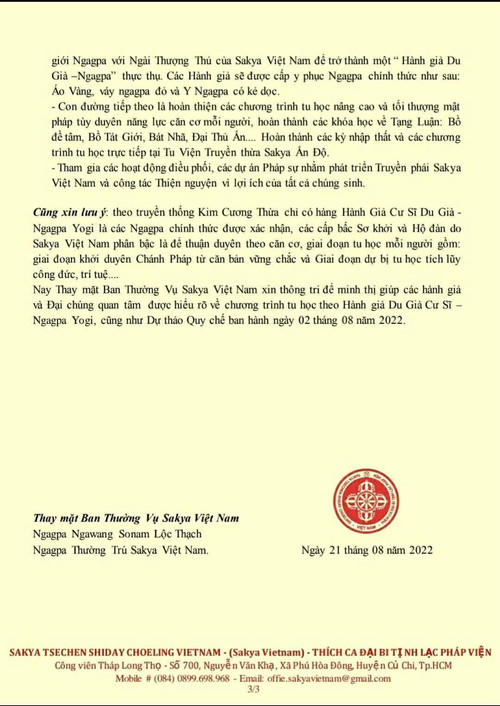 Trong Giáo này, người Tu Hành chỉ trụ Tâm Bồ Đề, phát chí nguyện Đại Bi, chẳng bỏ Giới Chúng Sinh vô tận, việc chẳng nên làm thì chẳng làm, việc chẳng nên tạo thì chẳng tạo, việc chẳng nên ăn thì chẳng ăn. Nếu lỡ làm thì phạm Tam Ma Gia (Samaya _ Bản Thệ).