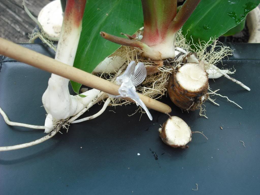 còn loại cây này , dạng lá cũng y như củ nghệ...nhưng đặc biệt trong ruột màu trắng.